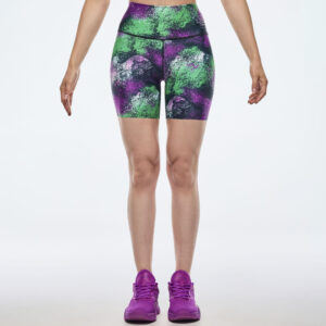 Apres Zumba High Waisted Biker Shorts – Green/Purple